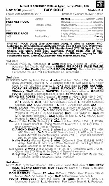 Lot 598 $190,000 + GST FASTNET ROCK ex FRECKLE FACE Bay Colt (Coolmore)