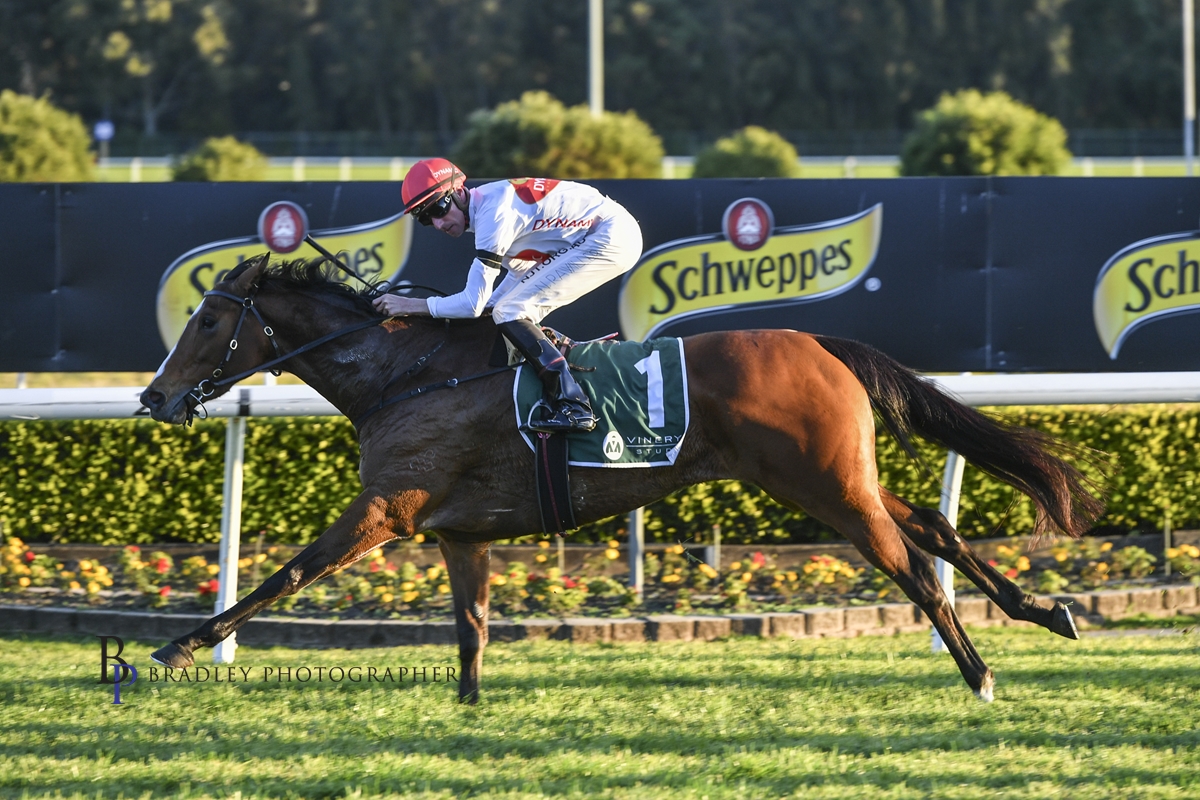 Vinery Stud Yearlings Benchmark 72 Handicap, Dynamic Syndications high-quality 4yo mare NARRATED (Snitzel x Fictional Account) was presented in immaculate condition by foreman