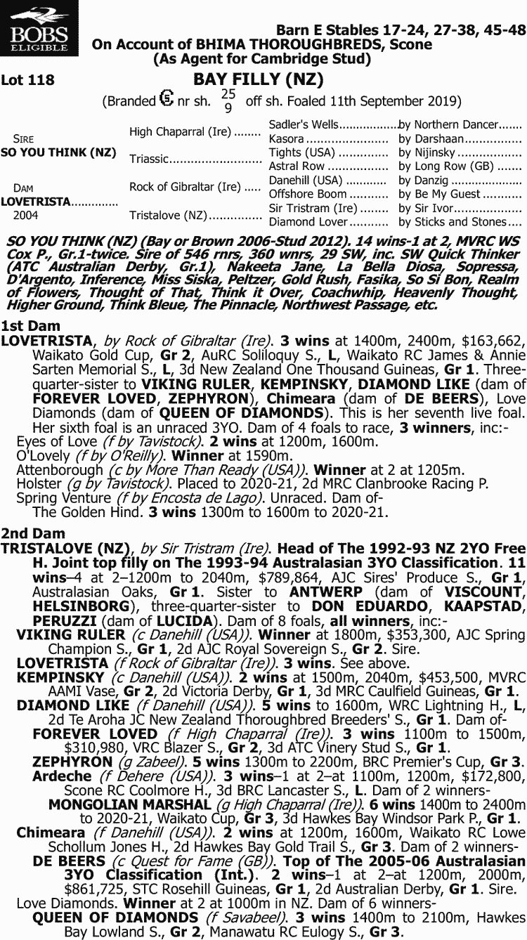 Offered by BHIMA THOROUGHBREDS (as agent for CAMBRIDGE STUD), LOT 118 is a daughter of the tremendous racemare