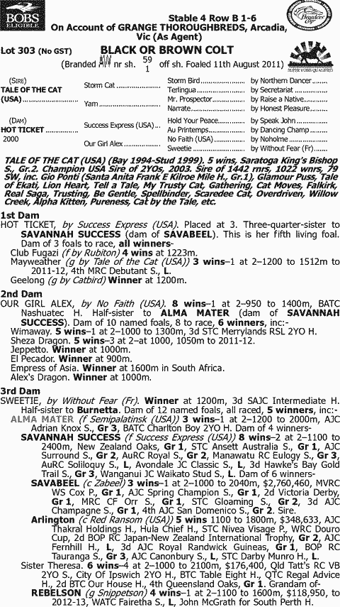 HOT TICKET has already done a good job in the breeding barn managing to get 3 individuals to the track all of whom have all won. She is also a ¾ sister to SAVANNAH SUCCESS who was the dam of Dean Watt’s Gr1 Cox Plate winner SAVABEEL. Obviously this has been an extremely successful family for Dean and his clients in the past and we hope that this colt will be another champion that races under the Dynamic banner.