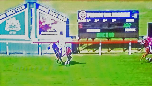 Robert Thompson in a Bm 65 1100m event and in the process of winning, going on to set a