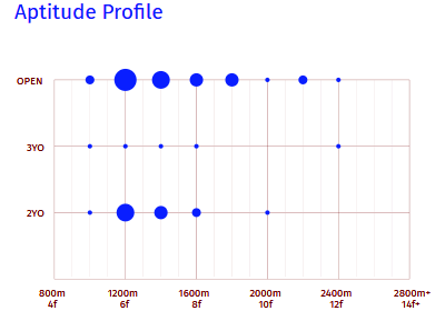 8 Wins at 1000m; Placed at 1100m, 1200m and 1300m. Placed as a 2yo