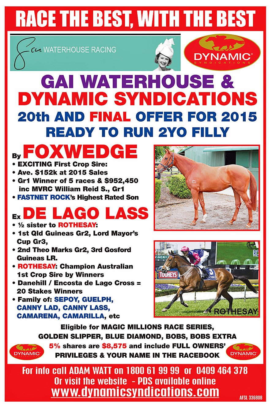 Our 20th and Final Promotion in 2015 is a FOXWEDGE 2yo filly who is related to AGHAN.