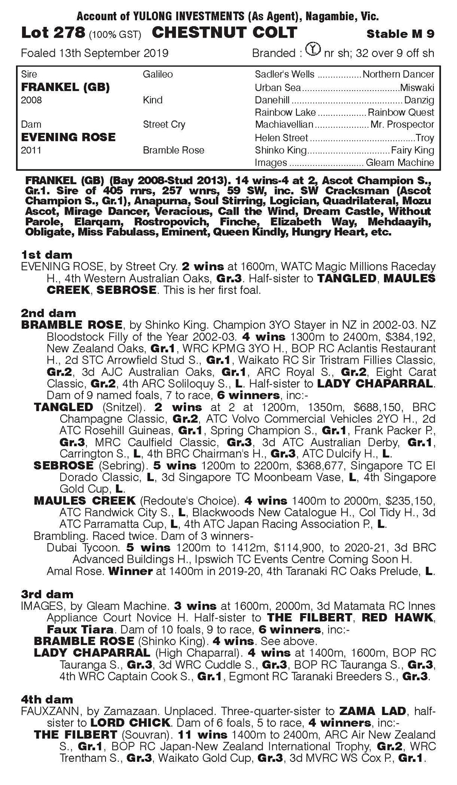 DADDY FRANK (Frankel x Evening Rose) 2yo Chestnut Colt