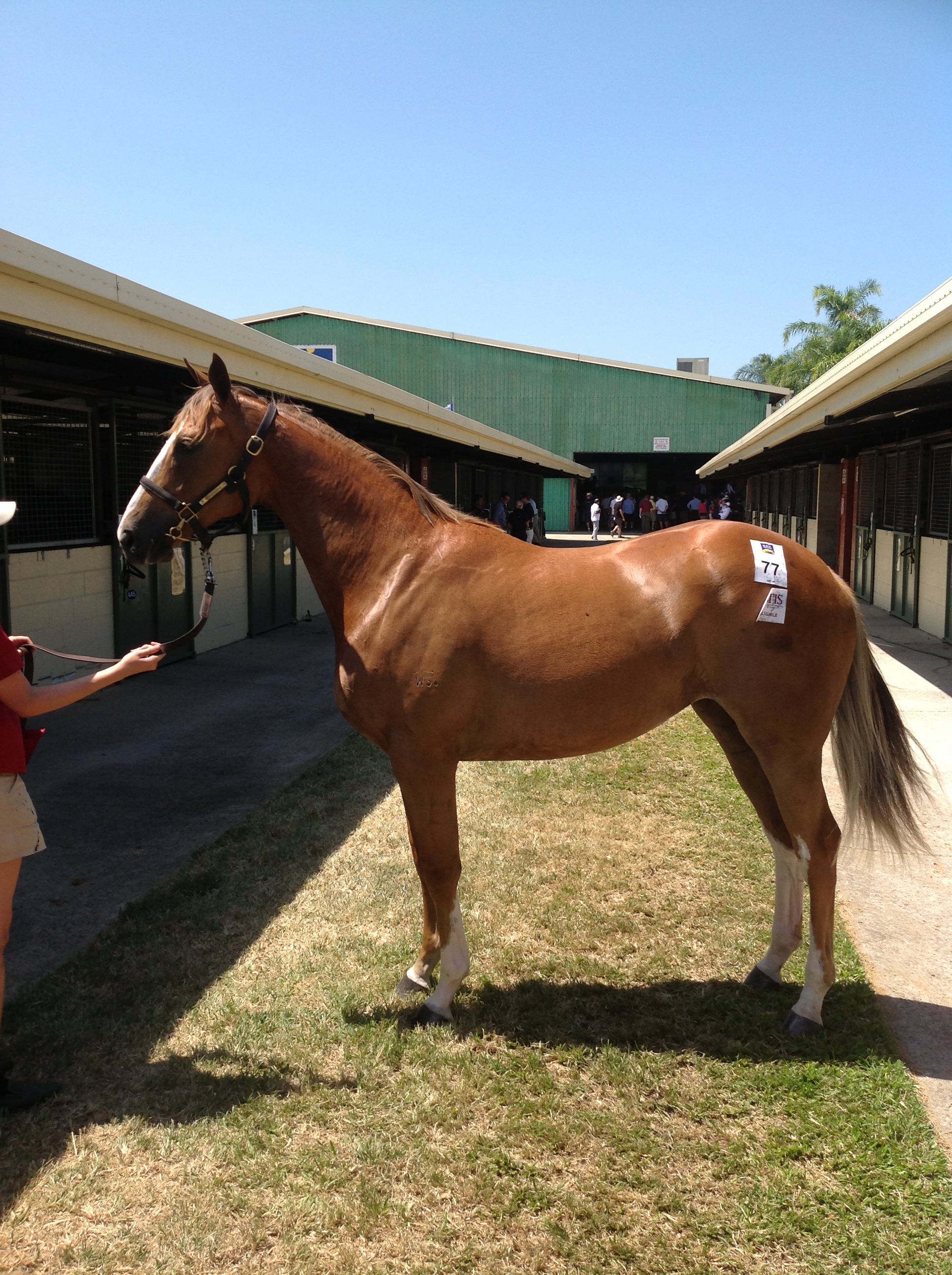 LOT 77 (MANHATTAN RAIN – MISS EXCELLENCE) came to the ring just before the half way point of day one of the sales and we were ready and waiting when she did. Dynamic had studied this lot carefully and thought that it may be out of our price range but much to our delight, we got her at a bargain base price. Dynamic paid just $90,000 for this extremely well related filly that will have plenty of residual value once her racing career finishes.