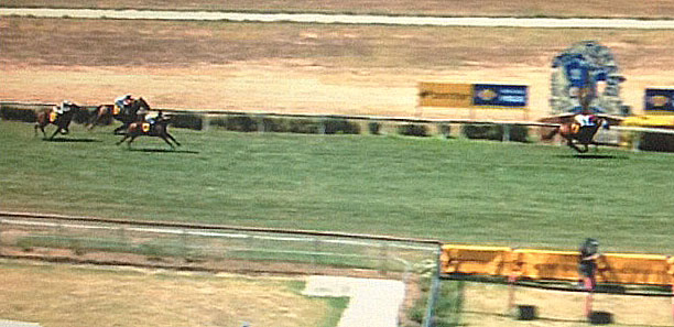 Crossing from wide out on the track, after the field had gone 100m HIRAD