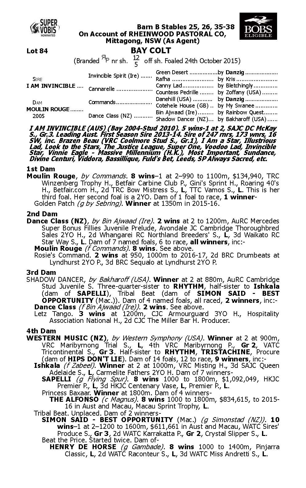 *Lot 84 (I Am Invincible x Moulin Rouge) Bay Colt