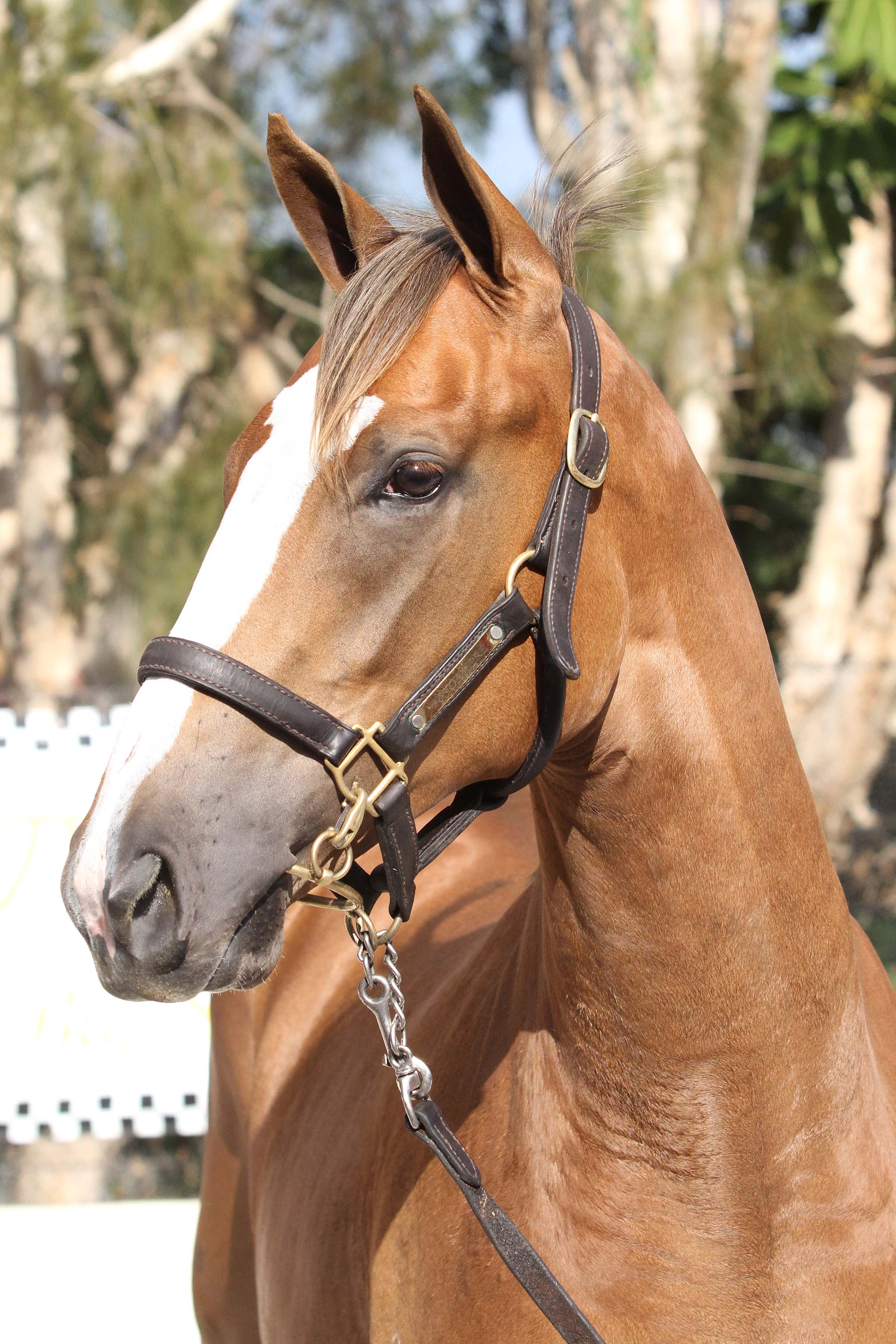 As seen by her head shot below she has a large clear eye and broad forehead which is a definite advantage when buying a horse.
