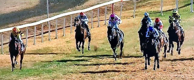 The big margin the leading pair had posted, was causing a few of the jockeys back in the pack to get a little trigger happy and approaching the 600m, they took off to try to reel in the breakaway duo.