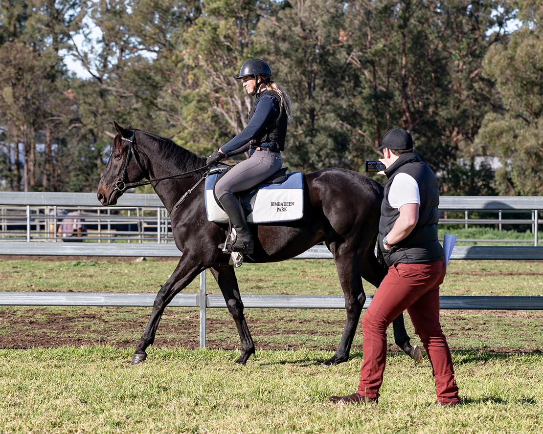 ADAM WATT getting the close up video of PRINCE BEEJAY under saddle for his owners