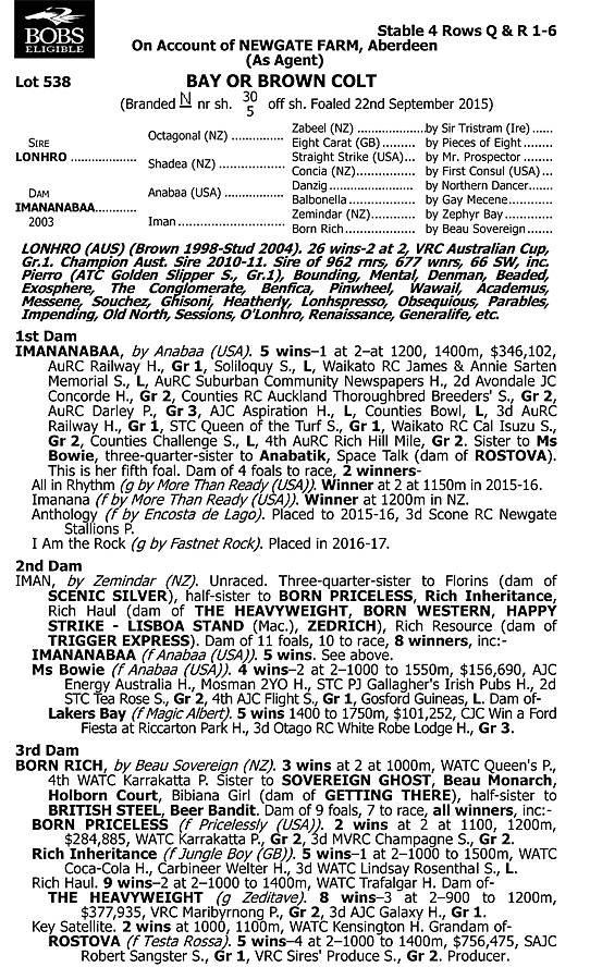 no other LONHRO progeny being offered in Australia in 2017. They are as rare as hen’s teeth.