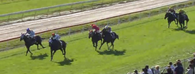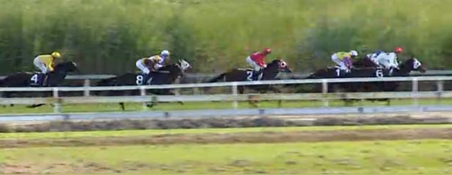 Burleigh Bullet started to over race for its apprentice rider whilst Tim Bell just stalked the leader with a lap full of horse.