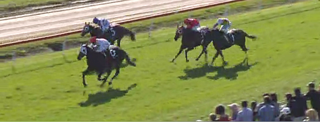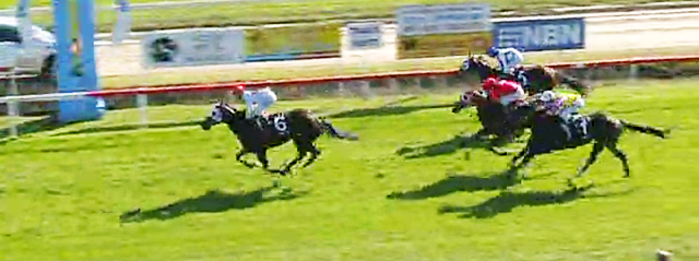 ACTION BUTTON winning her 4th race in 10 starts with ease