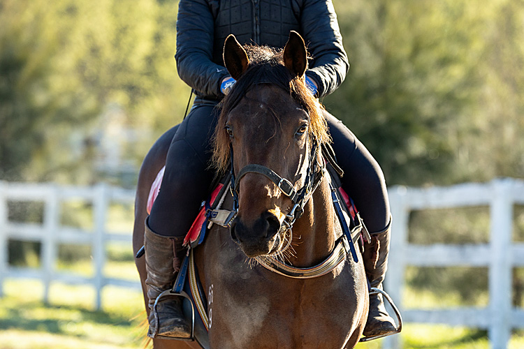 He resumed under saddle last week and we were able to grab some snapshots of our youngster going through his paces: