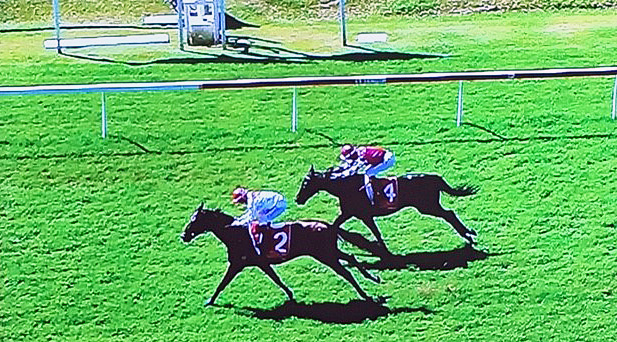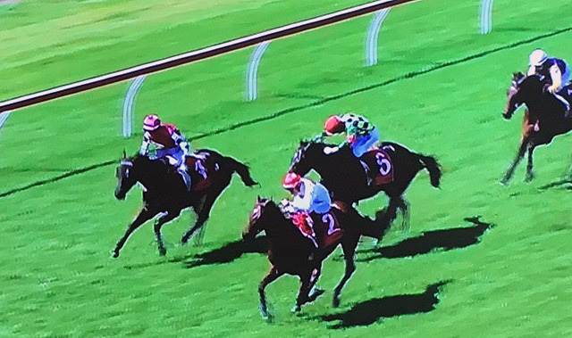 “GO BUTTON” and MESTALLA responded running to a 2 length lead. From the 200m the race was over so Jeff was kind to