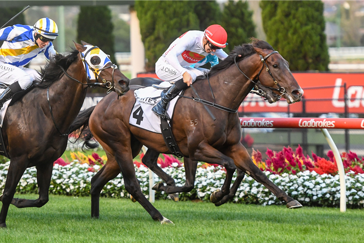 Ridden by Jordan Childs, MAJOR ARTIE (4yo Bay Gelding by Artie Schiller x Major Conquest) (60.0kgs) timed his run with military precision, to snatch victory by 0.1 length over Reliable Dude (58.5kgs) with Write The Score 0.85 length back in third and 2.35 lengths away was the odds-on favourite Eaglemont.