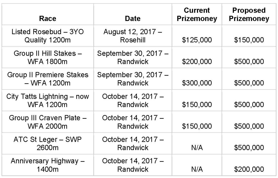 massive jump in Spring carnival prizemoney for Sydney races.