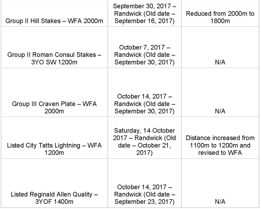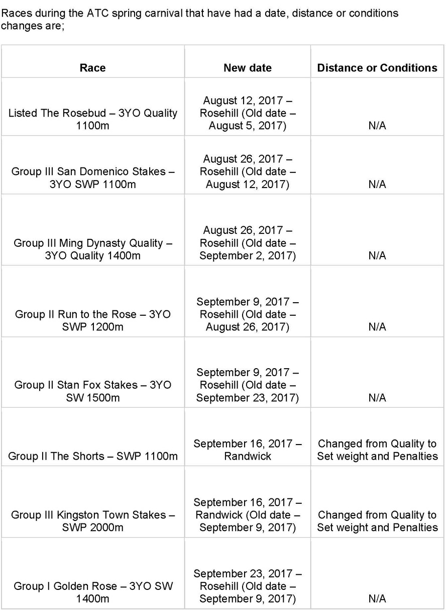 The Australian Turf Club has announced a