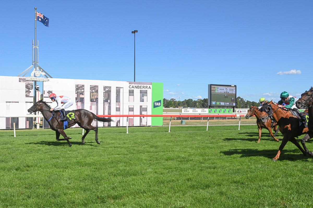1st of 9 CANB 2Apr25 1400m Soft5 MDN-SW $22,000 ($13,000) Pierre Boudvillain 56.5kg Bar6 2nd Leovanni (NZ) 56.5kg, 3rd Rufus Atticus 58.5kg 1:24.40 (600m 35.71), 1.81L, $6/$5.50/$4.20/$4/$3.90
