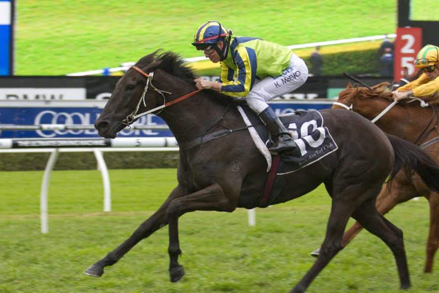 Kawi settled midfield in fast run race, making a run from the 500m in the middle of the track to run down and defeat the leader Ryan Mark (by Thorn Park) and Ginner Hart.
