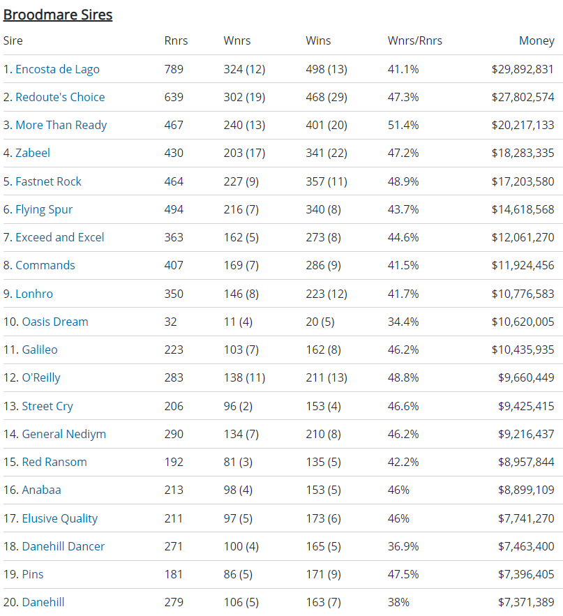 ENCOSTA DE LAGO - Regained Champion Broodmare Sire title