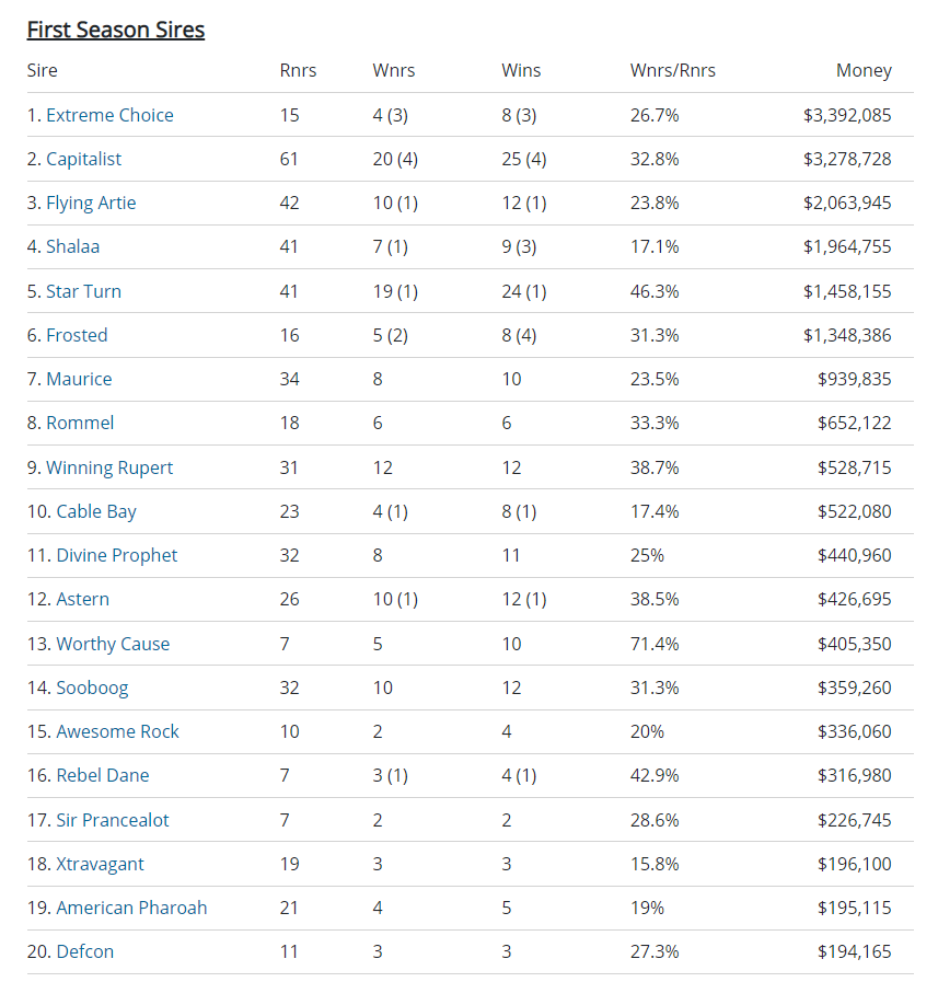 Newgate Farm’s young guns Extreme Choice and Capitalist ran the quinella in the first season sires division by Earnings.