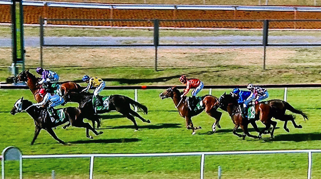 “And it has got there! It’s won the seven (7) (Aberration) and looking at the replay, it was so close, its only got there in the last half stride. A little master ride by Blake Spriggs.”