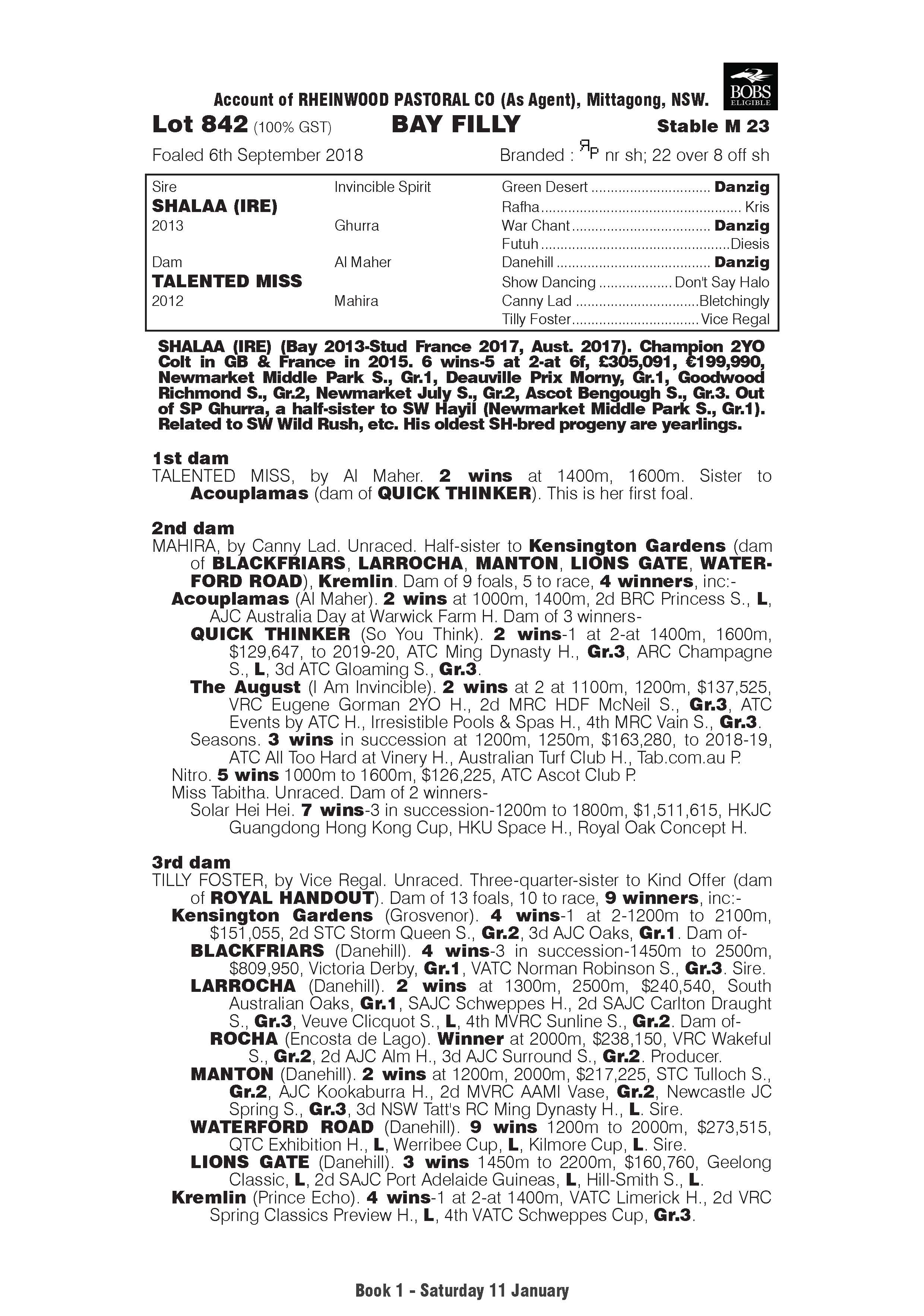 SHALAA x TALENTED MISS Bay Filly 5% Shares $8,200