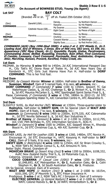 That Danehill / Biscay cross has produced 115 Stakes Winners including 14 Gr1 Winners, whilst the COMMANDS / MARSCAY cross has produced 12 Stakes Winners including Gr1 Winners PARATROOPERS and UNDUE whilst teh extended Danehill / Marscay has produced 27 Stakes Winners inc CATBIRD, ELVSTROEM, MR MURPHY, and CAMARENA.