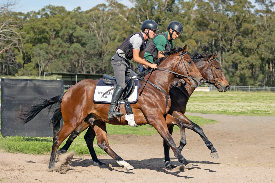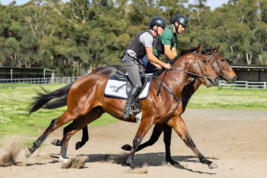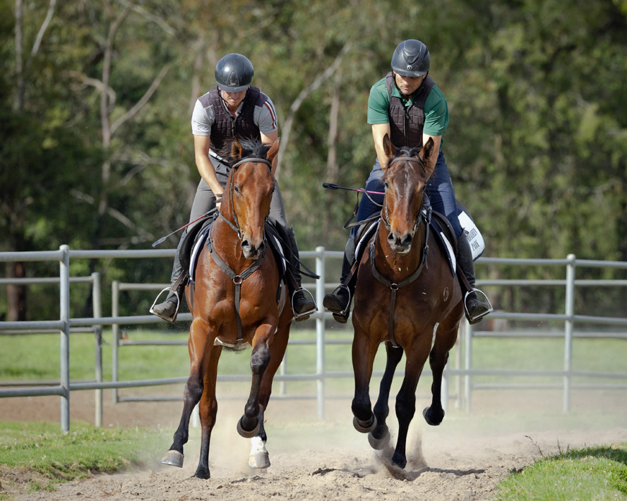 AMERICAN PHAROAH x LISSON GROVE (left) working with our Savabeel x Passion Cheval Colt 28/10