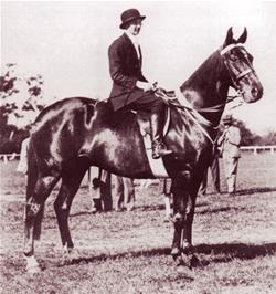 He was owned and ridden by Violet Murrell, who was considered one of the top show riders of her day. Violet Murrell was a trail blazer, riding against male jockeys on the race track and competing in point to points.