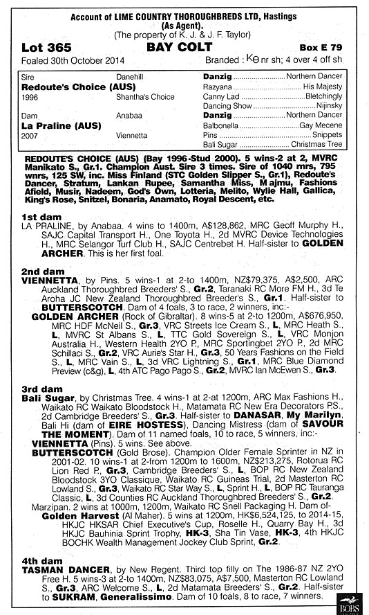 NZ Bloodstock Premier Yearling Sale, Lot 365 by REDOUTE’S CHOICE x LA PRALINE was targeted by