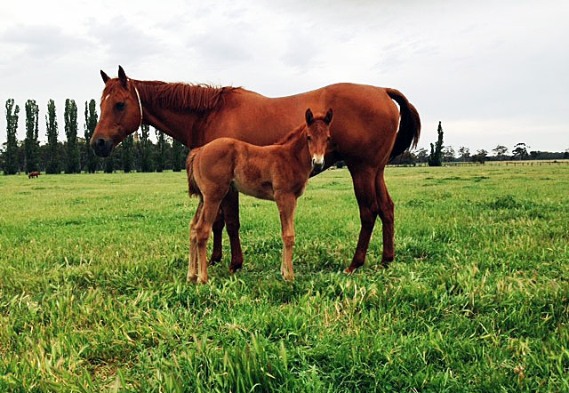 This is the first live foal from the mare and she has done a fantastic job producing such a top foal. The size and strength of the filly is fabulous and the filly has certainly inherited the sire’s powerful hindquarter.