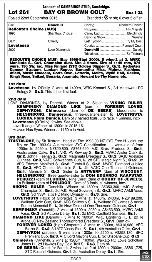 Dynamic Syndications this year purchased one of the most exciting yearlings we have purchased in many years when at the NZ Bloodstock Premier Sale we secured from Sir Patrick Hogan’s Cambridge Stud a sensational looking colt by Redoute’s Choice from the mare Lovetessa (by O’Reilly).