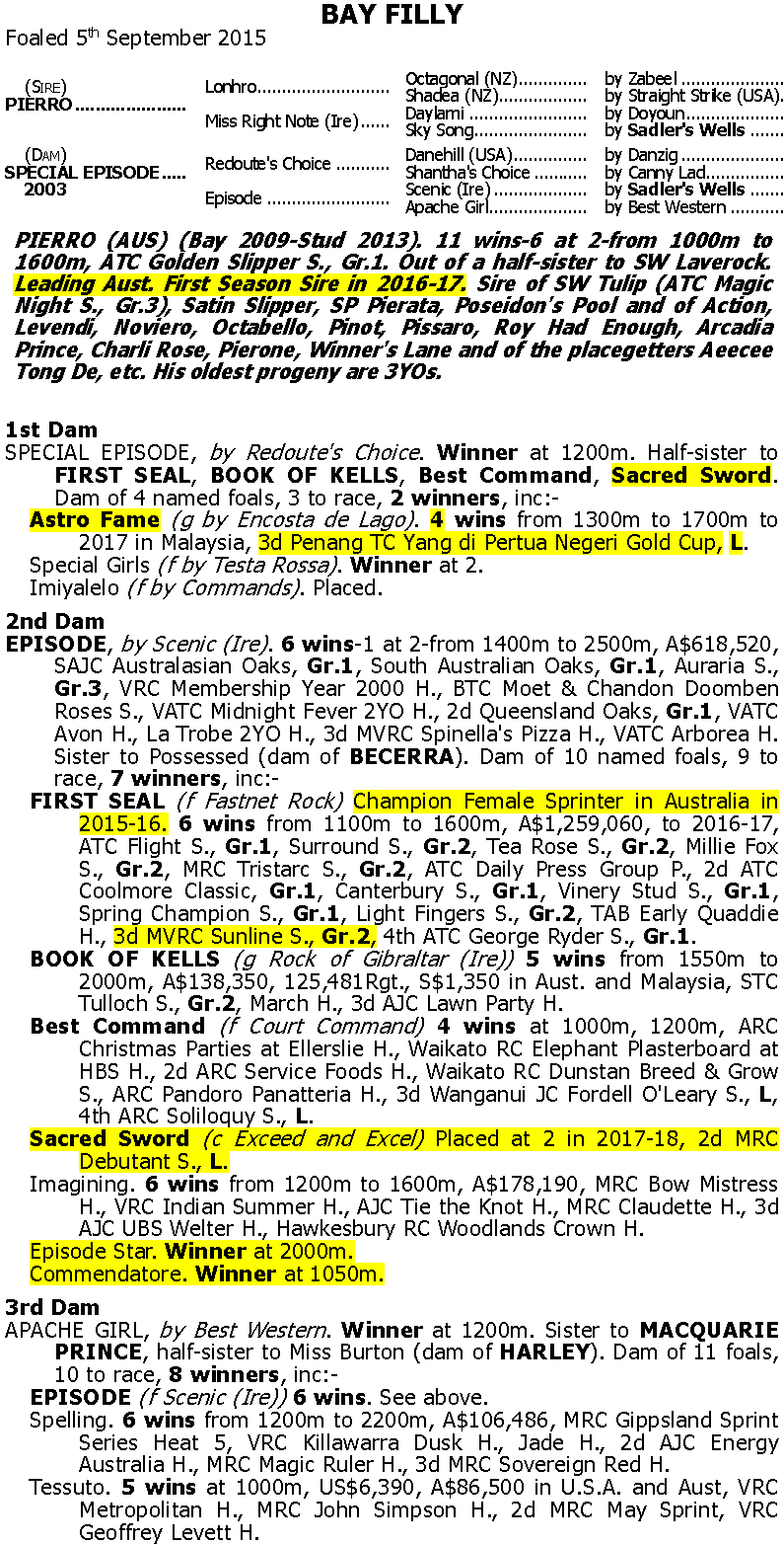 Our PIERRO ex SPECIAL EPISODE filly is very closely related to SACRED SWORD.