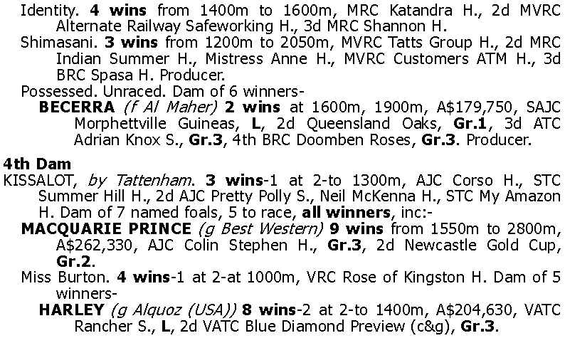 We highlight on the pedigree page below, the additions to the family which were not seen on the catalogue page at the yearling sales, but