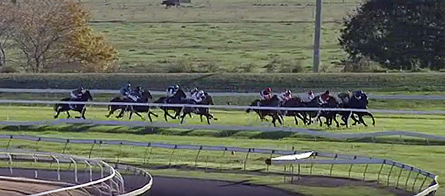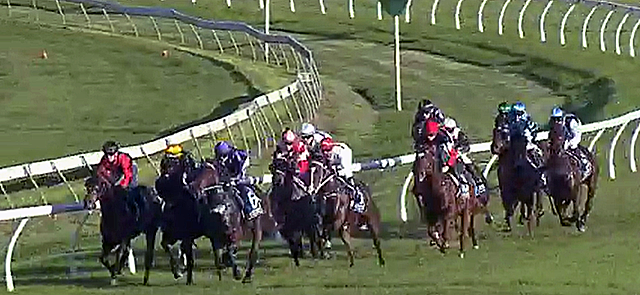 Swinging into the straight four-deep and widest,