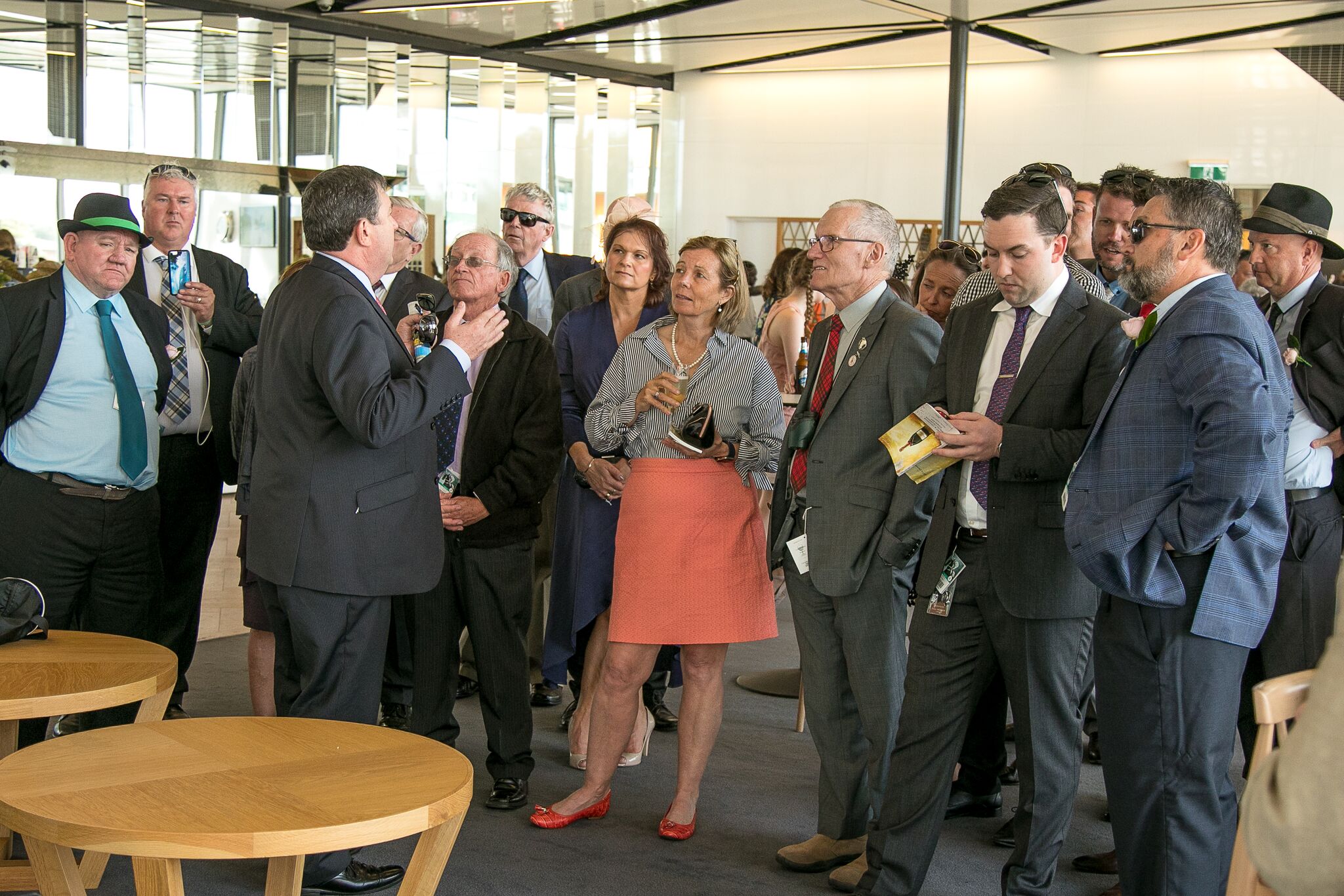 Dean Watt with the Savapinski owners in the Owners Room having a chat post race about future racing options