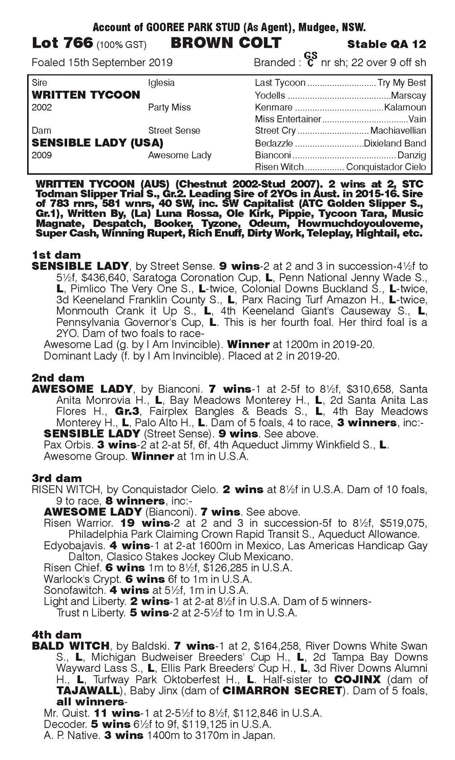 Our latest acquisition - LOT 766 A Brown Colt by WRITTEN TYCOON x SENSIBLE LADY (USA)
