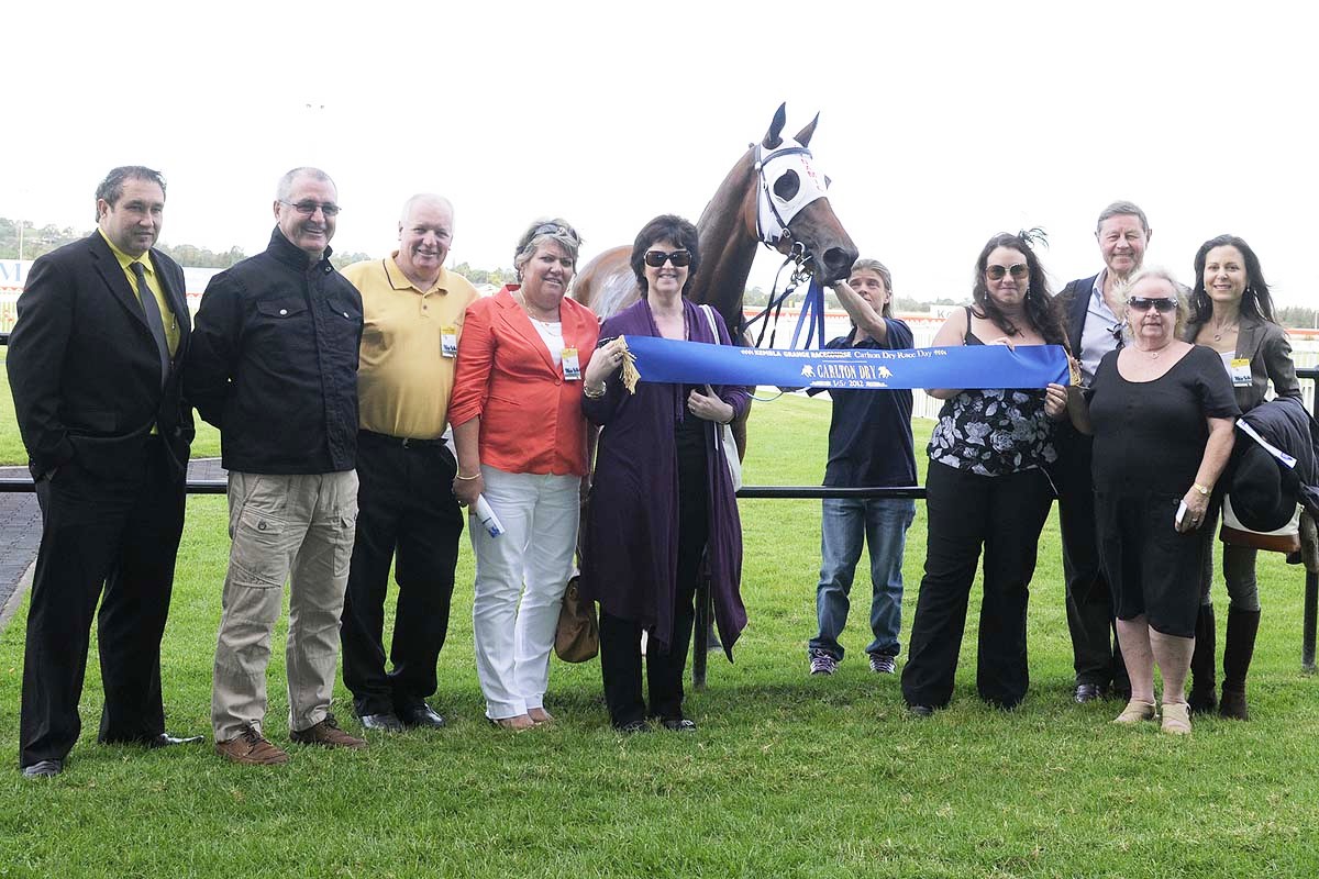 Dennis Shepherd (3rd from left) in the winners circle with co-owners