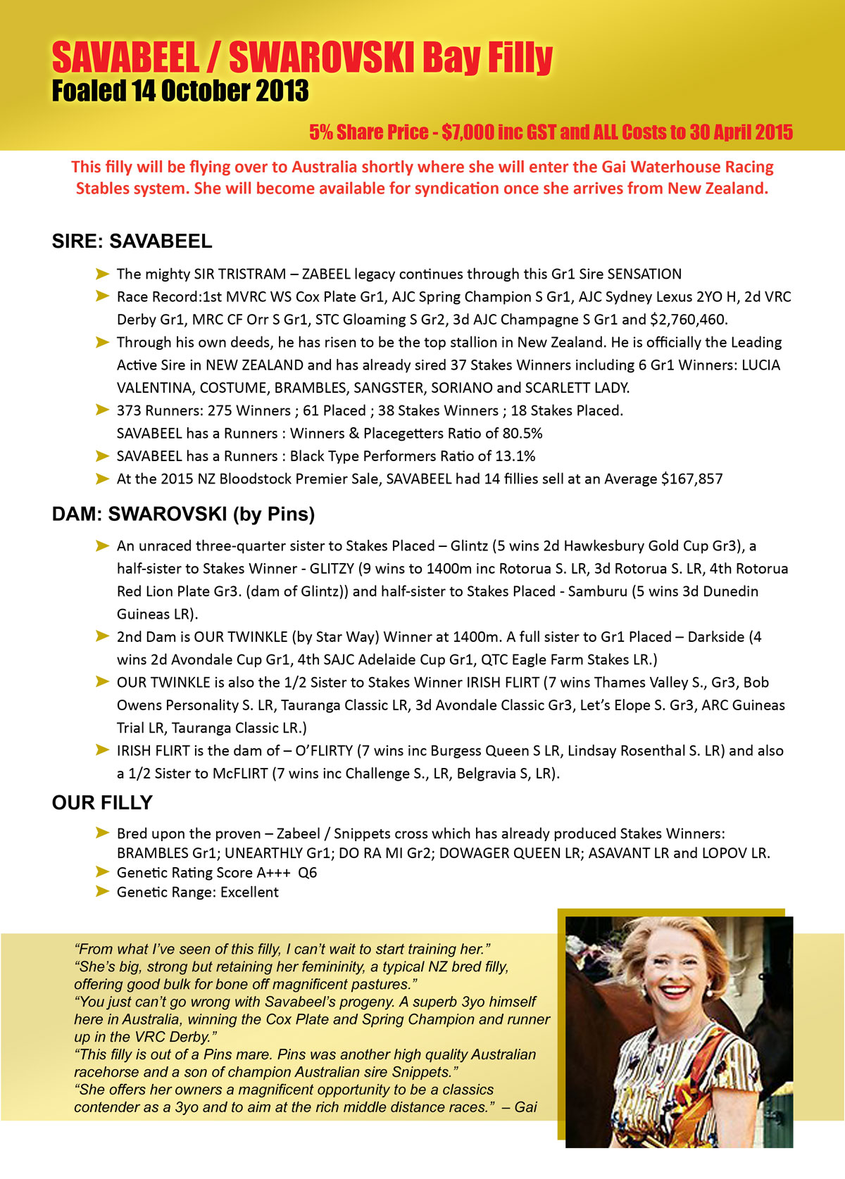 In the month of March 2015 SAVABEEL has sired the following Stakes Winners: