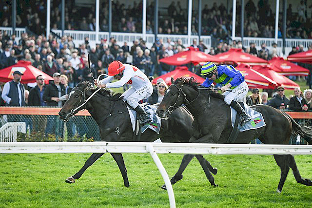 SENSATIONALISATION under the vigour of Damien refused to surrender, digging deep to hold out the runner-up as they spreadeagled the field behind.