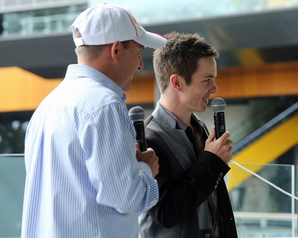our Master of Ceremonies – Dean Pettit to the platform. A quick banter between the pair was well received by the building crowd, as lunch was being served.