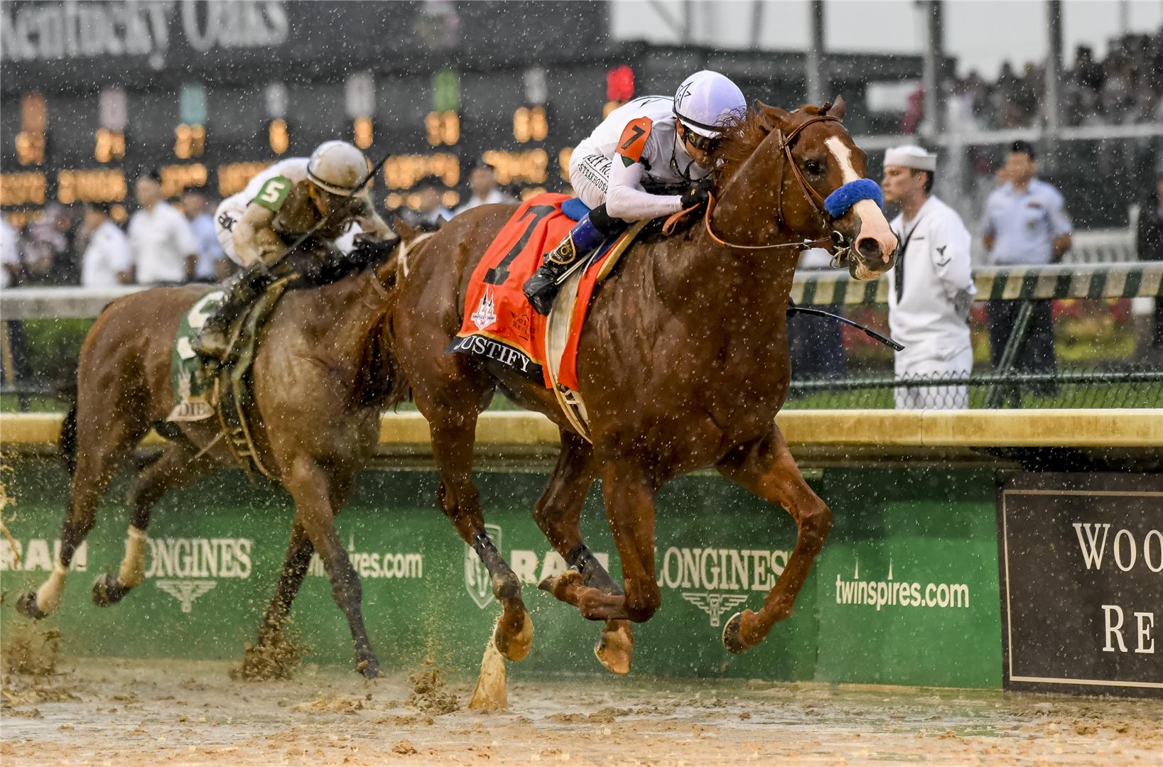 JUSTIFY winning the Kentucky Derby