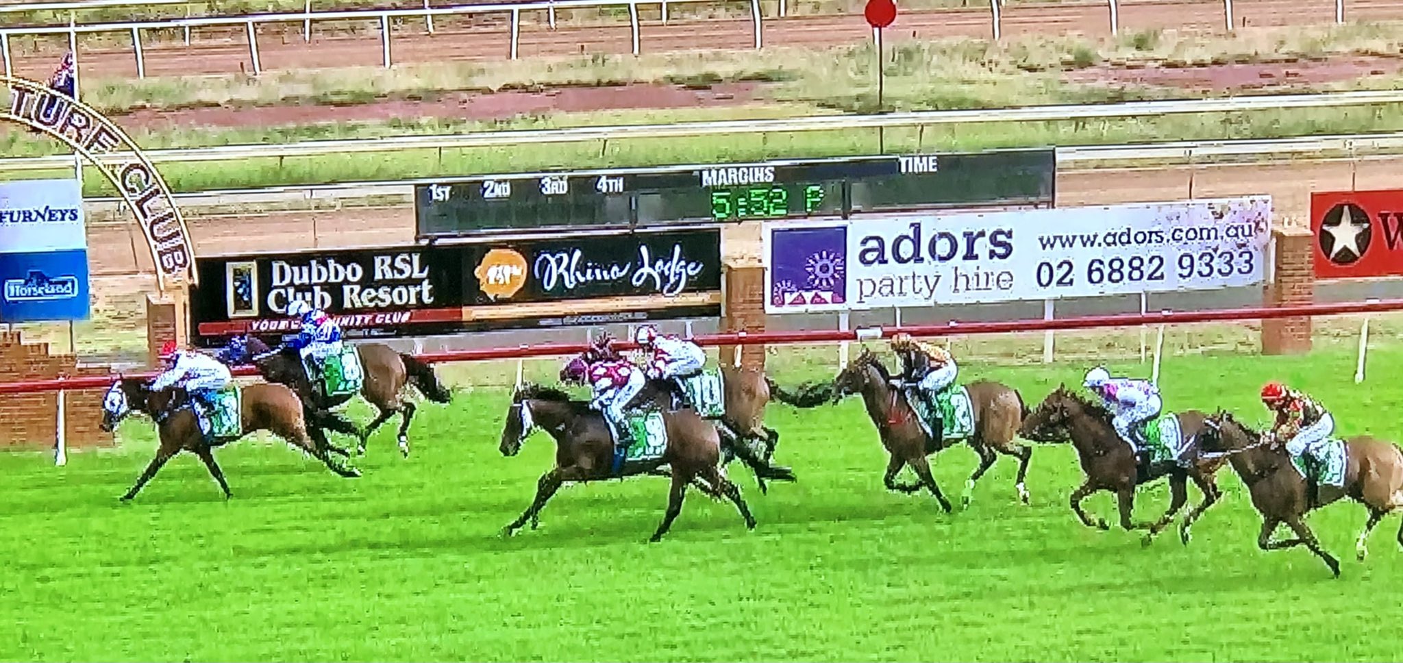 TIME TO DAZZLE off the heels of the runner-up to give chase. Spotting the leaders 3 lengths and with horses swooping out wide, the race was appearing to turn into a battle of attrition and a very busy finish. However superior staying genetics kicked-in and