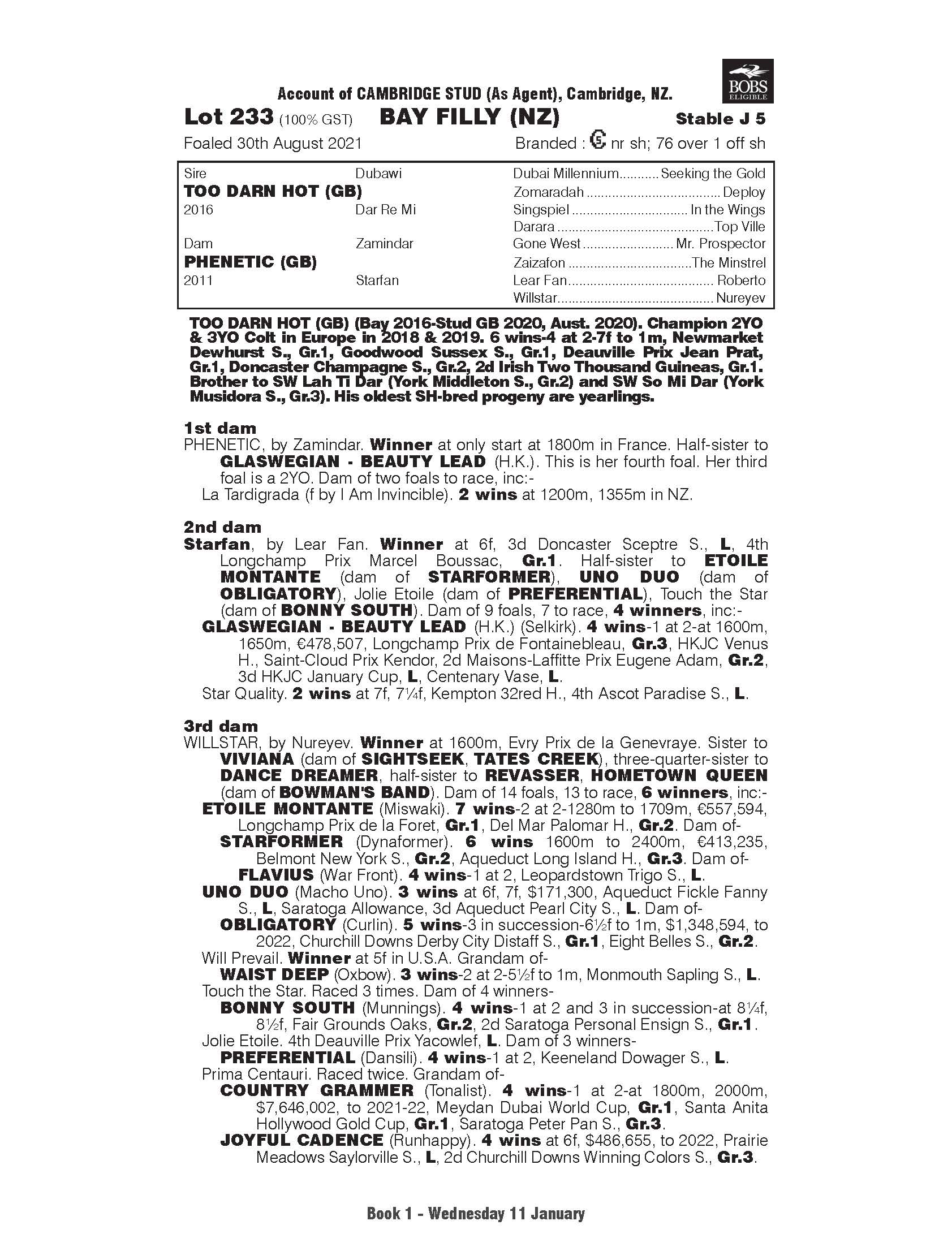 She was bred in NZ at the number one nursery Cambridge Stud and is bred on a cross that has produced 10 Runners: 8 Winners including 2 Gr1 Winners. Genetically she was the best-bred yearling in the southern hemisphere by the sire.