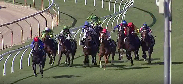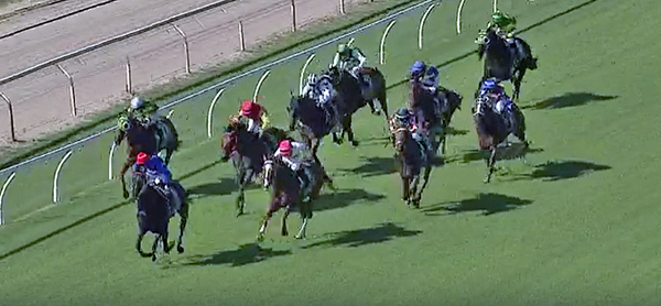 Down the side on the track, nothing changed in the race pattern until just before the turn into the home straight.