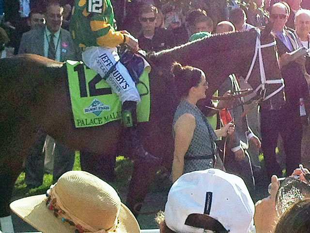 A quick snapshot Dean took on his phone of the 13/1 winner PALACE MALICE in the parade ring