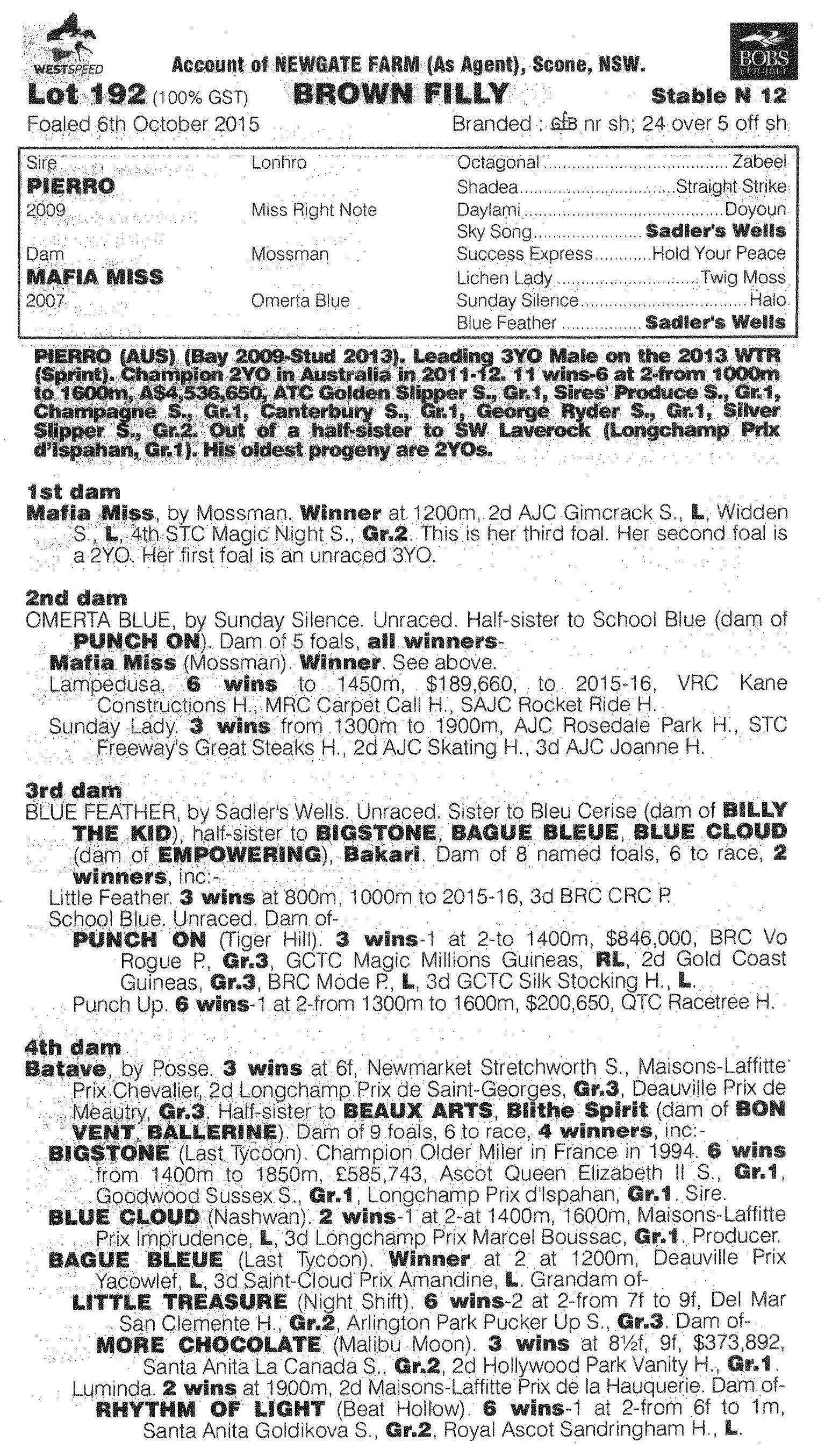 Our Second Purchase by Pierro was Lot 192 from the Magic Millions ex Stakes Placed mare Mafia Miss