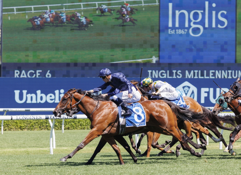 In his first crop of Australian two-year-olds, the Annabel Neasham trained filly LEARNING TO FLY scored an outstanding win in the $2million Inglis Millennium (1100m) at Randwick to cement her place as outright favourite for the Golden Slipper.